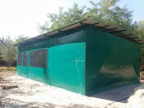 Мягкие окна ПВХ отлично проявили себя при защите укрытия от холодного порывистого ветра, косого дождя, снега.