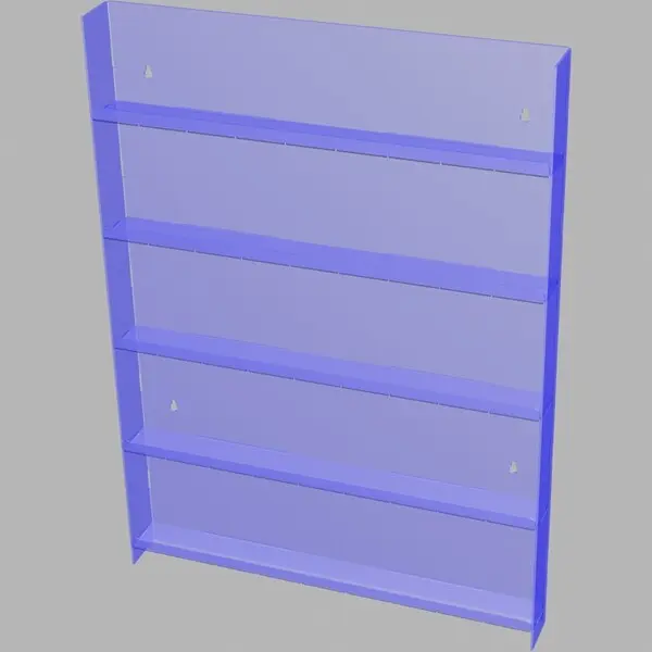 Многоуровневый пластиковый дисплей из оргстекла используется для демонстрации лаков для ногтей на вертикальных поверхностях торгового зала.