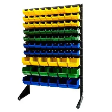 Стеллаж для метизов использует пластиковые ящики ( пластиковые контейнеры ) для хранения различных метизов .Это может быть и саморез, и болт, и гайки и другие крепежные изделия.Его еще называют органайзер для метизов.Стеллаж с ящиками отлично подходит для хранения мелких деталей гаража, как складское оборудование, также и как торговое оборудование в выставочном зале магазина по продаже метизов.Наиболеее востребован стеллаж для метизов в качестве оборудования для малого бизнеса (складское оборудование, торговые стеллажи).В нашей компании Вы можете купить уже готовый стеллаж, либо по-отдельности купить пластиковые ящики (контейнеры) для хранения метизов.